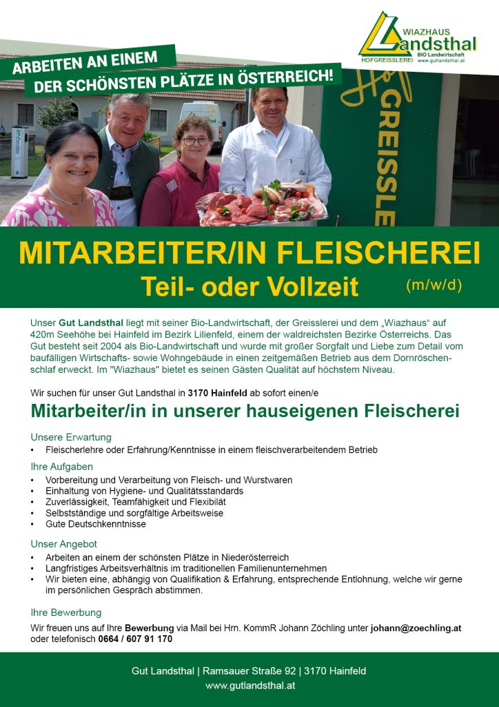 Mitarbeiter/in Fleischerei im Gut Landsthal (m/w/d)