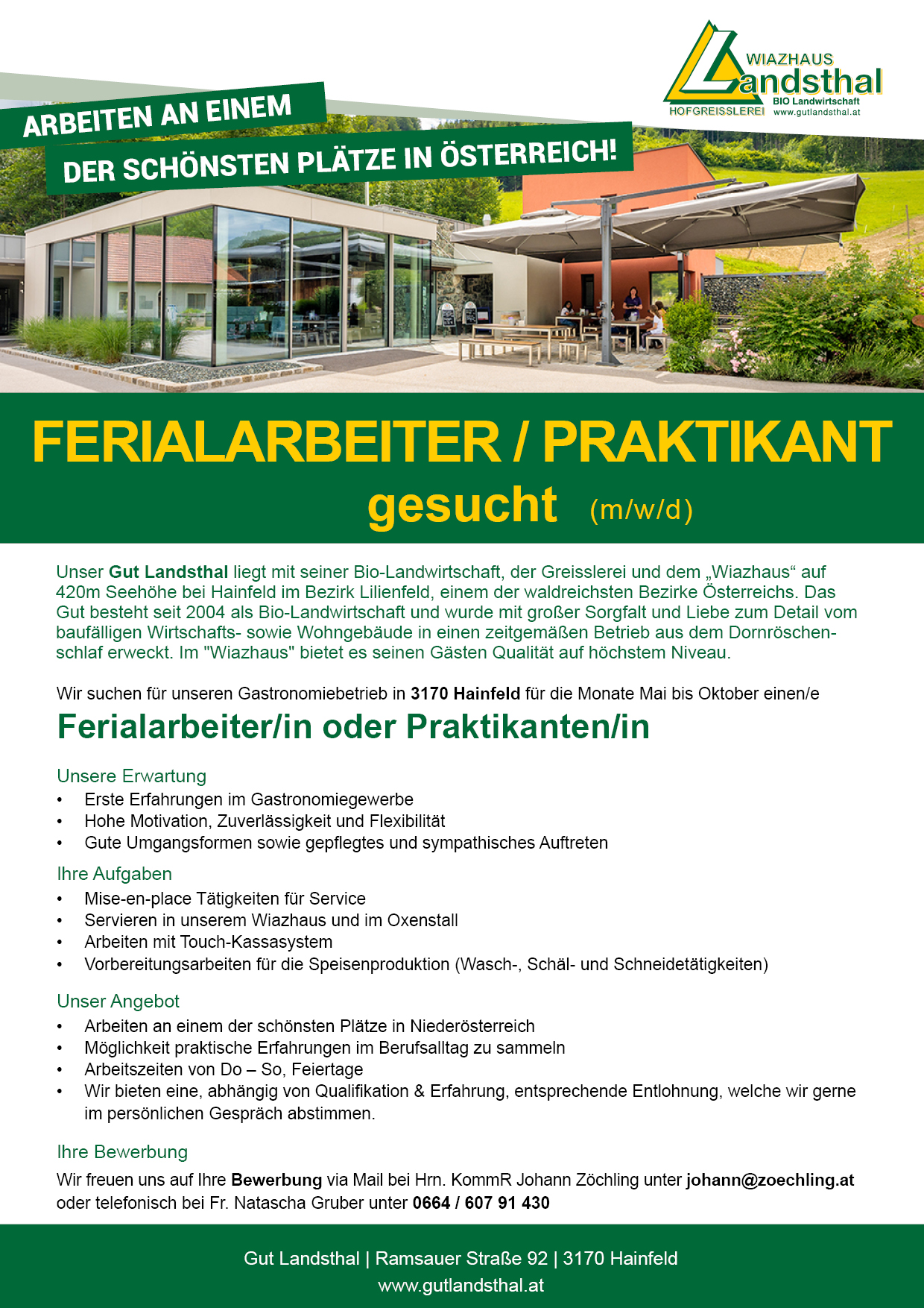 Ferialarbeiter / Praktikant im Gut Landsthal (m/w/d)