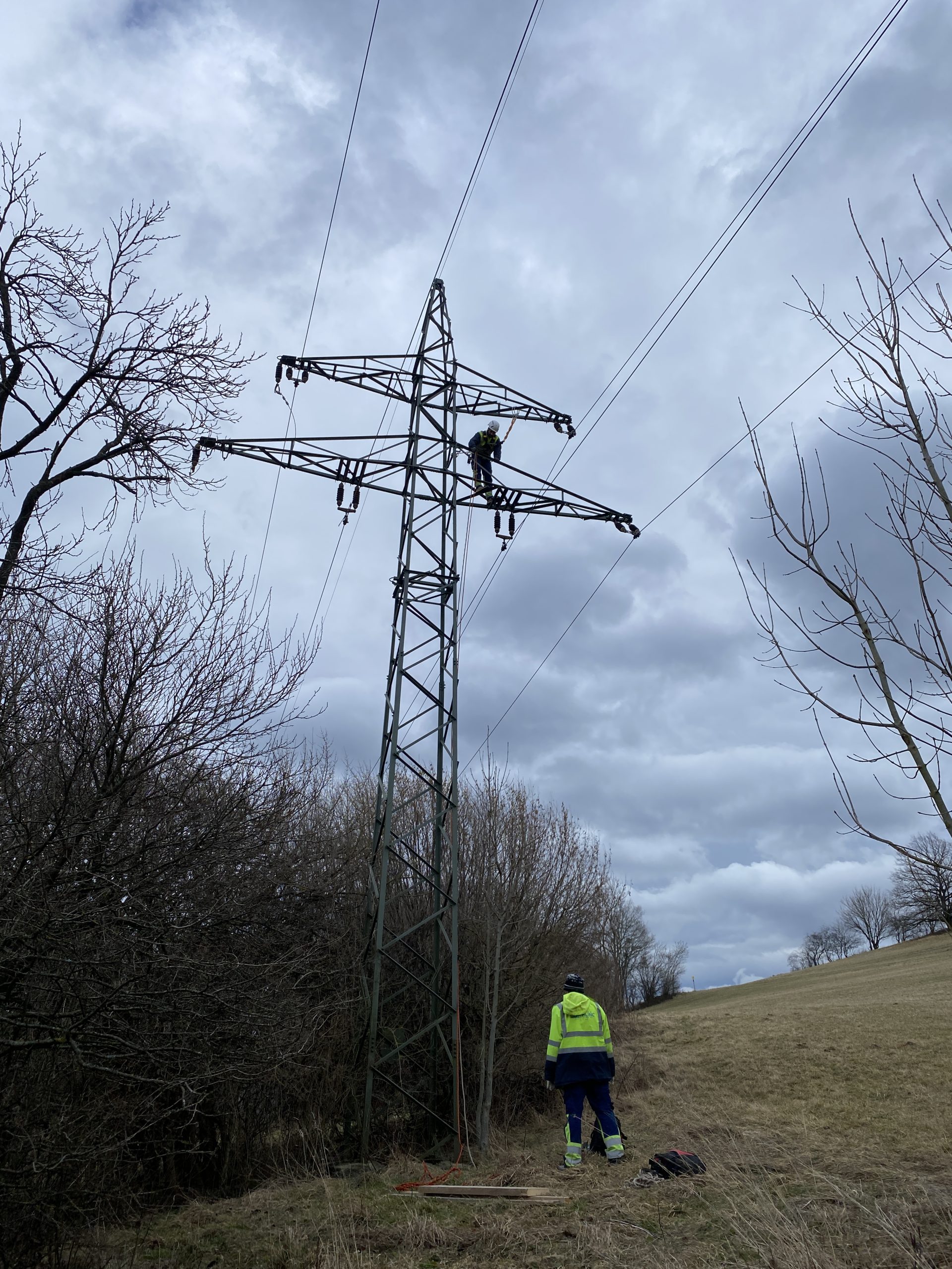 In der ersten Phase wurden die sechs Leiterseile, sowie das Erdseil fachgerecht demontiert.